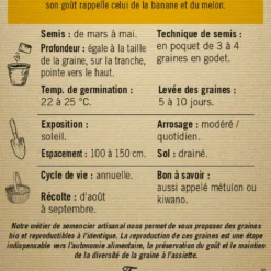 Consigli per la coltivazione: la coltivazione all’aperto è particolarmente adatta nelle regioni più calde, altrimenti i frutti non maturano. Un materiale pacciamante nero favorisce la crescita e la maturità. Dopo la quarta foglia la pianta può essere tagliata. I germogli laterali che crescono da essa vengono poi tagliati dopo la terza foglia. La pianta può crescere liberamente sul terreno, ma i frutti vanno sistemati su una tavola di legno o su una pacciamatura di paglia. Quando il viticcio alla base del frutto si è asciugato, è possibile la raccolta.