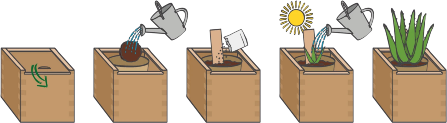 Con un po’ di amore e pochi semplici passaggi, questa ecobox diventerà presto una graziosa piantina. Se dopo qualche tempo l’aloe vera desidera un po’ più di spazio, può essere trapiantata in un vaso più grande insieme al vasetto compostabile.