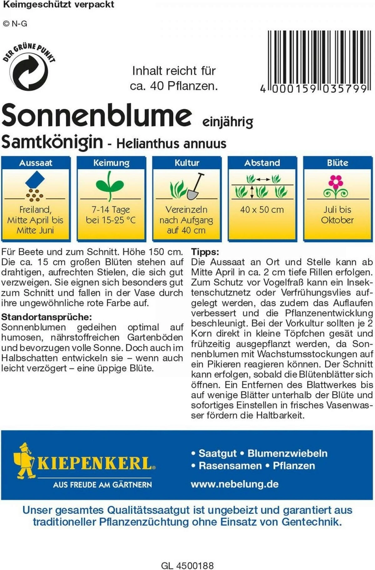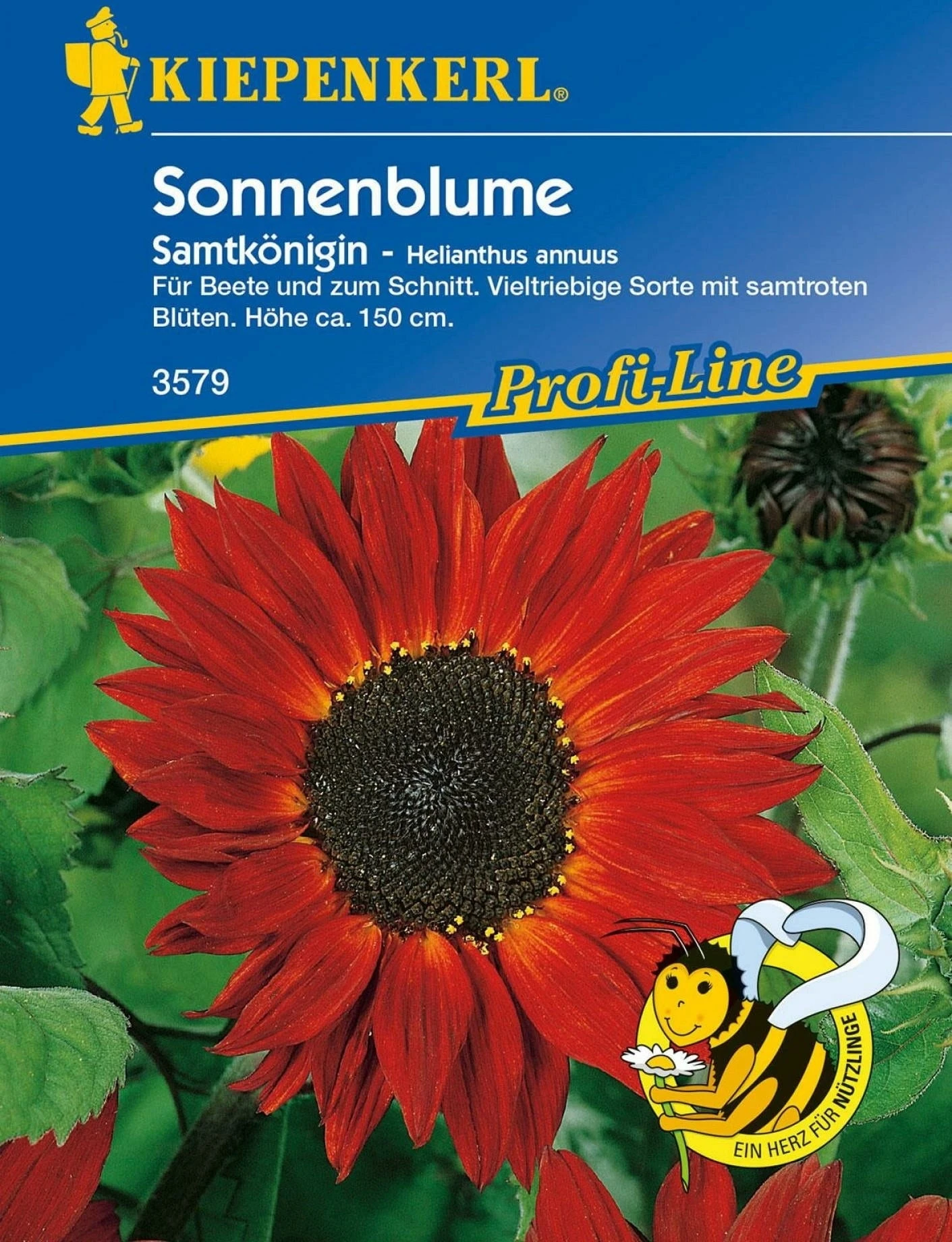 Questa variante di girasole sviluppa fiori eccezionalmente belli e vellutati che raggiungono circa 15 cm di diametro e poggiano su steli robusti e dritti alti circa 150 cm. Sono particolarmente adatti per essere recisi e abbelliscono la casa con il loro colore rosso acceso.