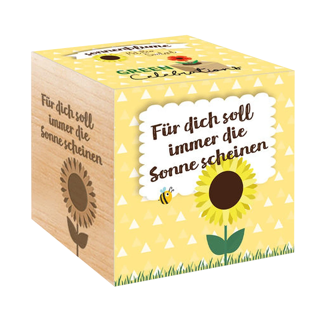 Se stai cercando un regalo elegante, ma personale, che viene dal cuore, allora sei nel posto giusto con i cubi Green Celebrations realizzati in legno di ontano. Il cubo è dotato di un’incisione di alta qualità, contiene semi di Helianthus debilis e uno speciale granulato nutriente.