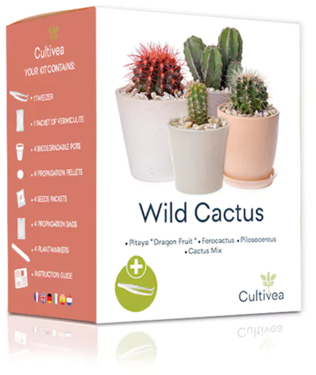 - 5 sacchetti di semi: Pitaya “Dragon Fruit”, Ferocactus, Pilosocereus e Cactus Mix.