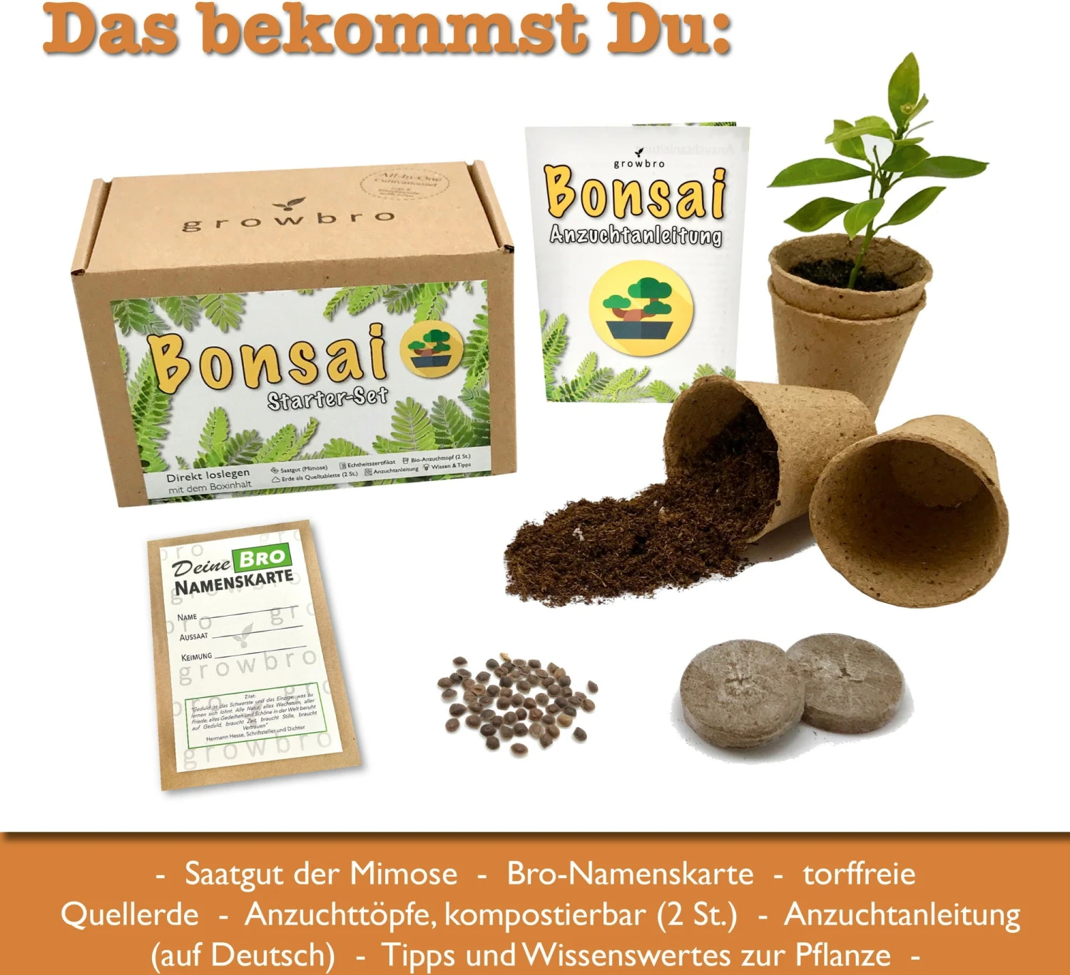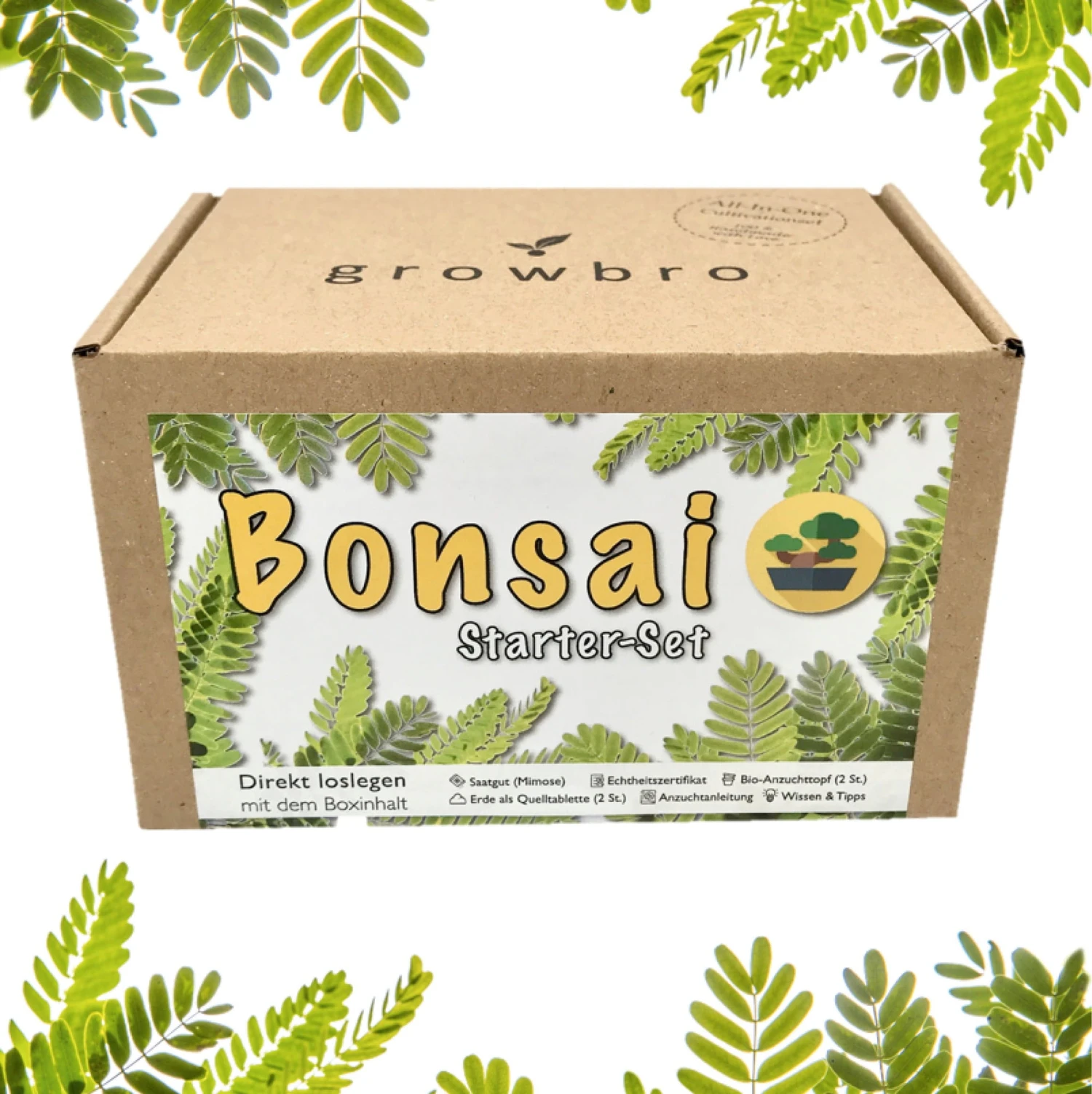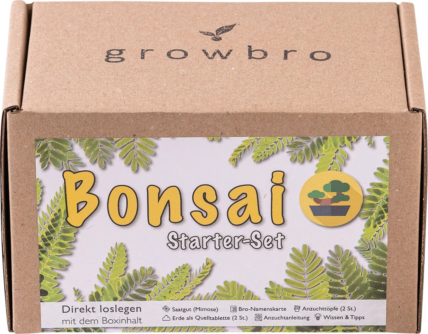 Questo set contiene tutto l’occorrente per la coltivazione di un bellissimo bonsai di Mimosa pudica, una pianta che al minimo tocco arrotola le foglie. Tutti i set da coltivazione growbro sono realizzati a mano e con cura in un piccolo stabilimento in Germania.