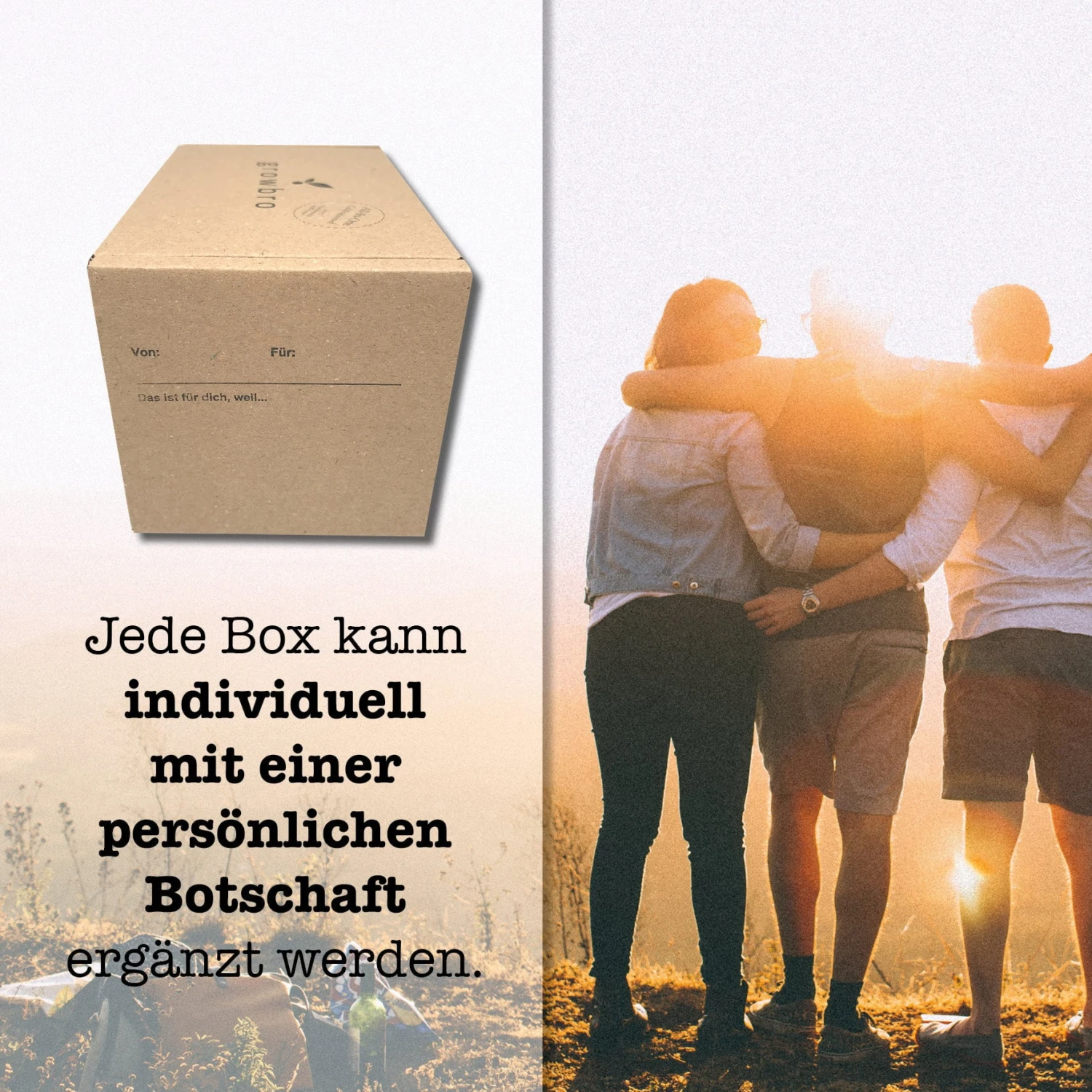 La scatola di cartone inoltre può essere decorata individualmente con un messaggio personale.