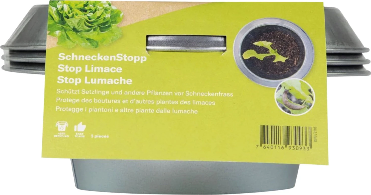 Stop Lumache FE, con il suo bordo ricurvo verso il basso, è perfetto per le fasi di semina e di crescita dei germogli. L’accessorio va semplicemente posizionato intorno alla pianta e inserito nel terreno. L’irrigazione mirata delle piante direttamente nell’anello ha un effetto aggiuntivo contro le lumache, perché l’ambiente esterno all’anello rimane asciutto e rende difficile per le lumache strisciare sulla superficie del terreno.