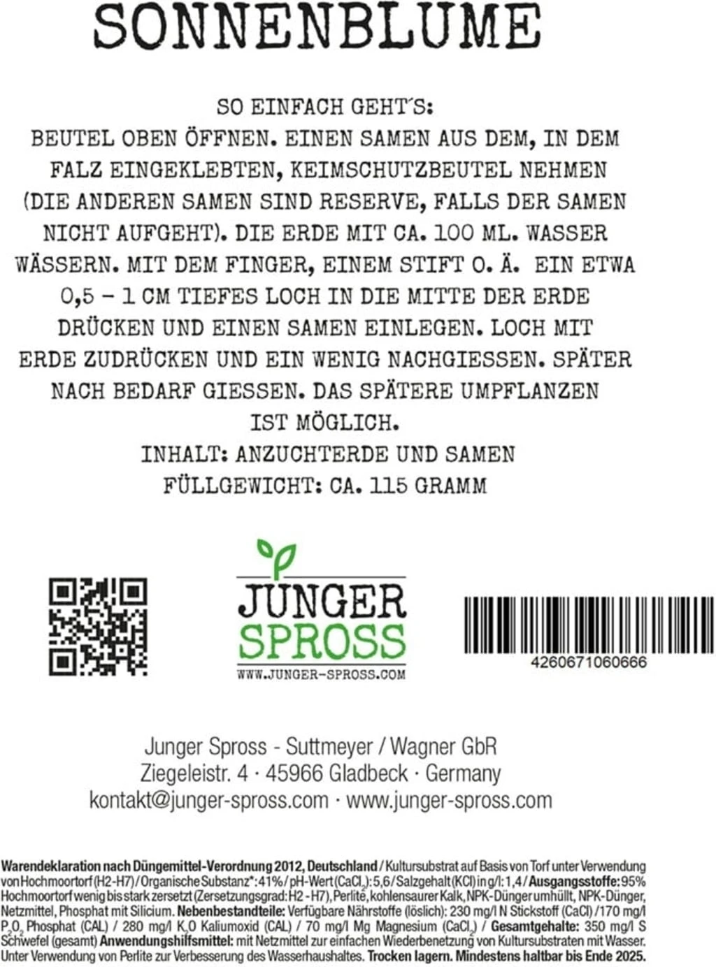 Questo set di coltivazione contiene semi di girasole e substrato con fibra di cocco ed è perfetto per esprimere il tuo affetto a chi vuoi tu in ogni occasione. La scelta ideale per gli amanti della natura!