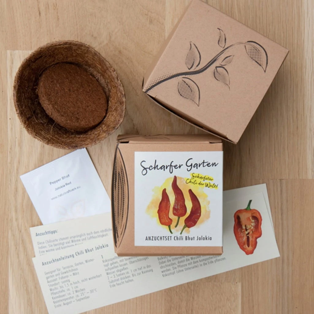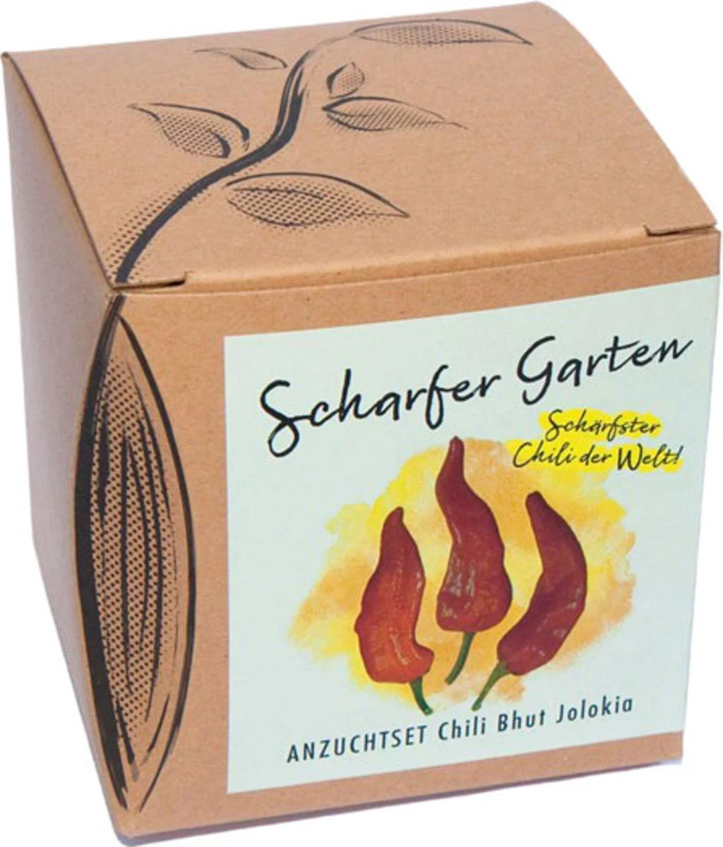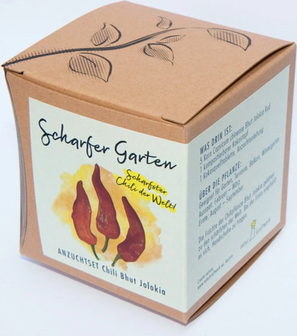 Il “Bhut Jolokia Red” è considerato il peperoncino più piccante del mondo. Dalla sua polpa essiccata si ottiene una polvere di peperoncino piccante che può essere aggiunta, in piccole quantità, a salse o zuppe. Con questo bellissimo set potrai coltivare questo infuocato peperoncino direttamente a casa tua. Un regalo assolutamente geniale per gli amanti del peperoncino.