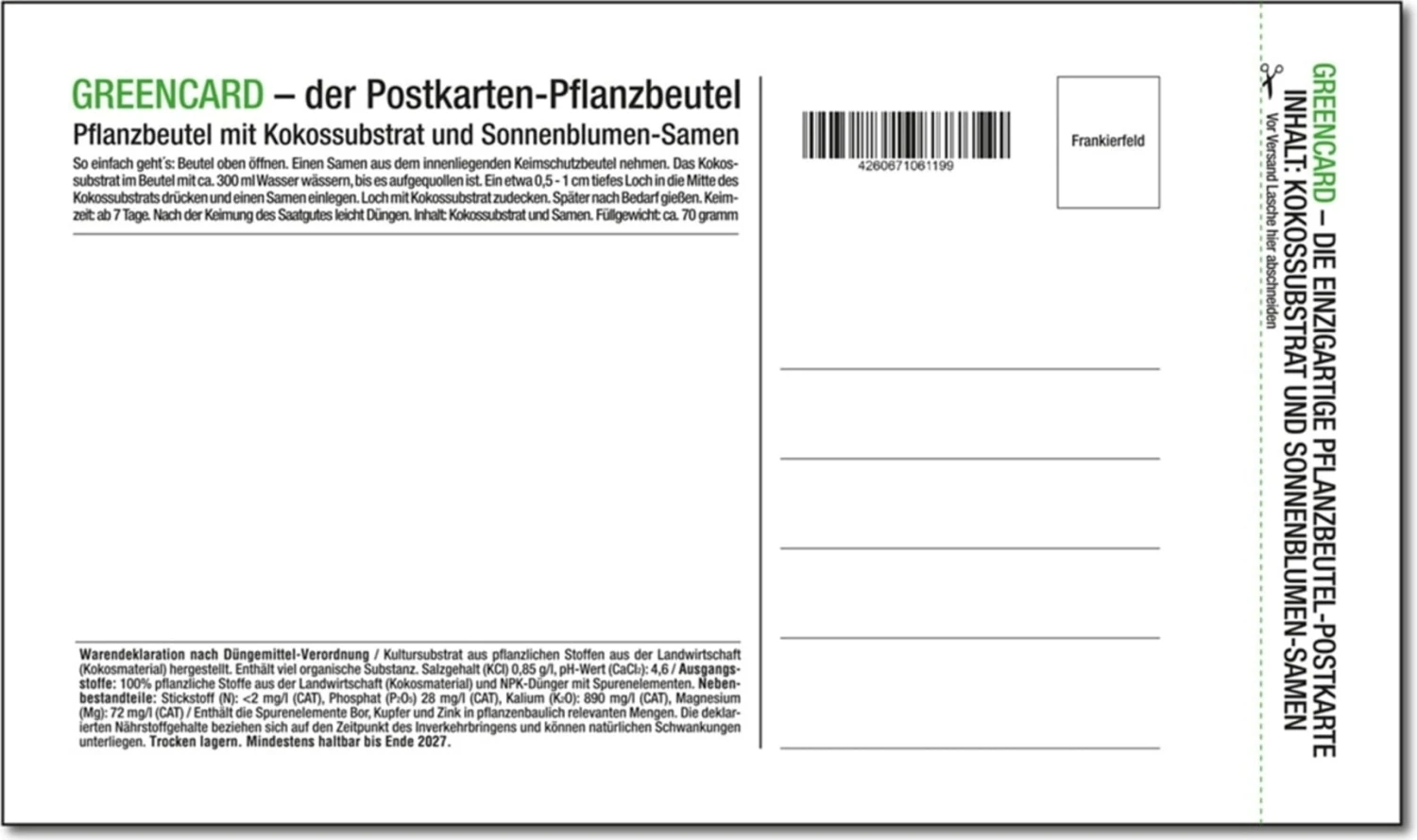 Le Greencard di Junger Spross sono delle vere e proprie cartoline, che quindi si possono anche spedire, che contengono semi e substrato per coltivare fiori o piantine. Sul retro c’è anche lo spazio per scrivere il proprio messaggio personale e l’indirizzo. Un’idea originale e green per mandare saluti o auguri anche a chi non è vicino.